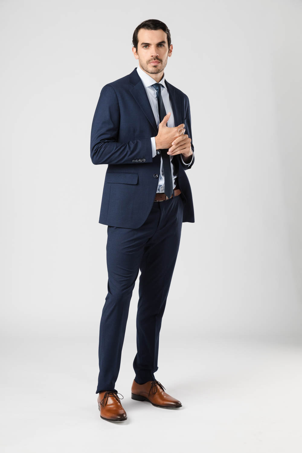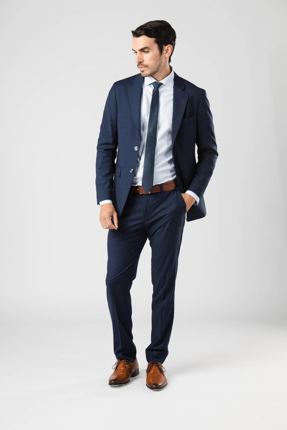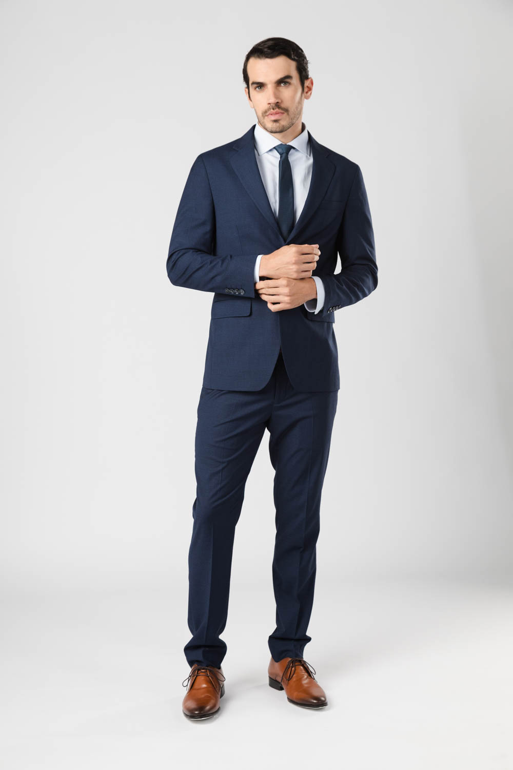 Ambo fantasía regular fit S’100, 2 botones. Pantalón sin pinza. Poliéster/viscosa. Línea importación. |