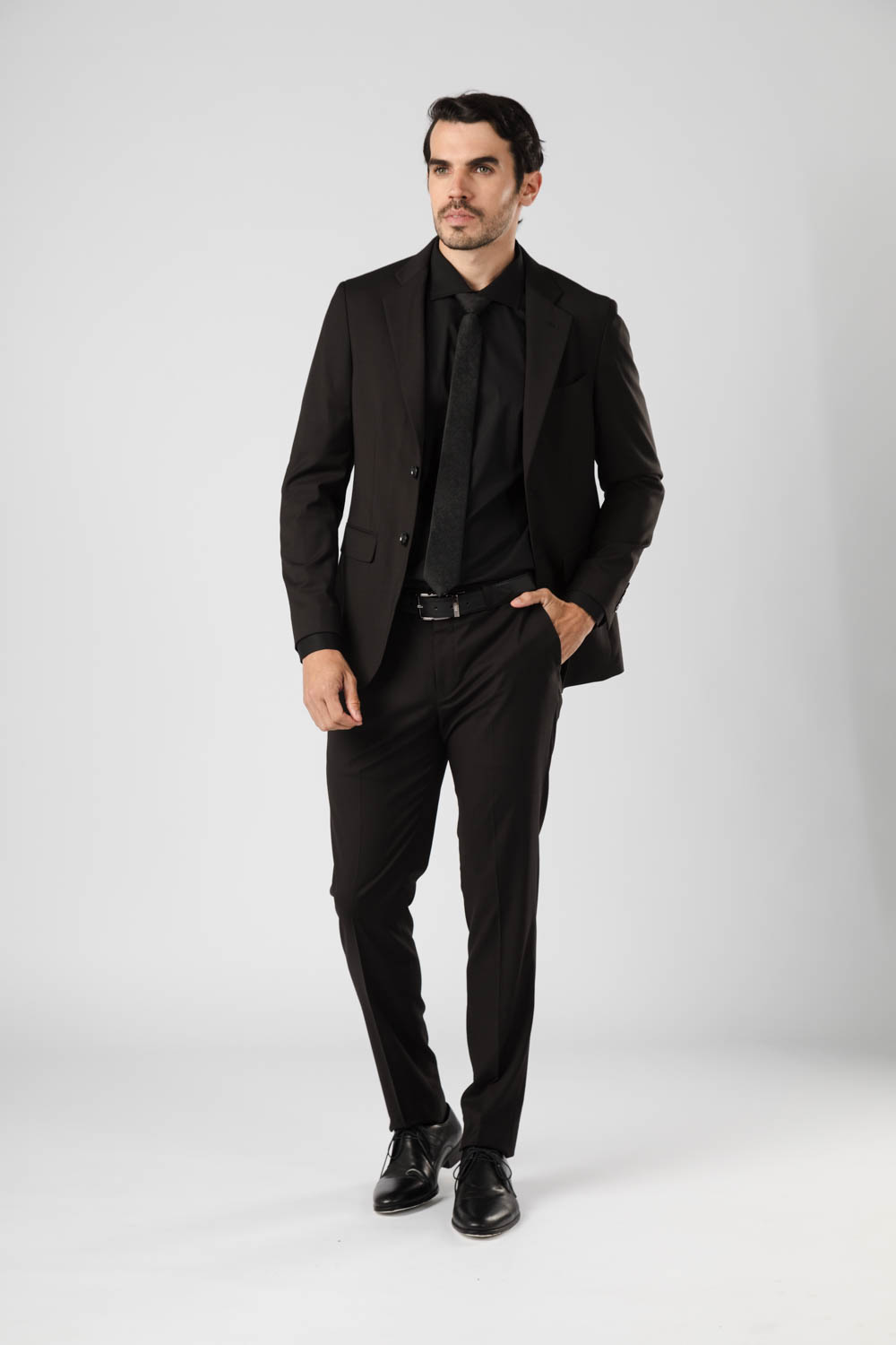 Ambo de línea importación, confeccionado en mezcla de poliéster y viscosa Super 100, que aporta estructura y una caída impecable. El saco de dos botones se combina con pantalón sin pinzas.