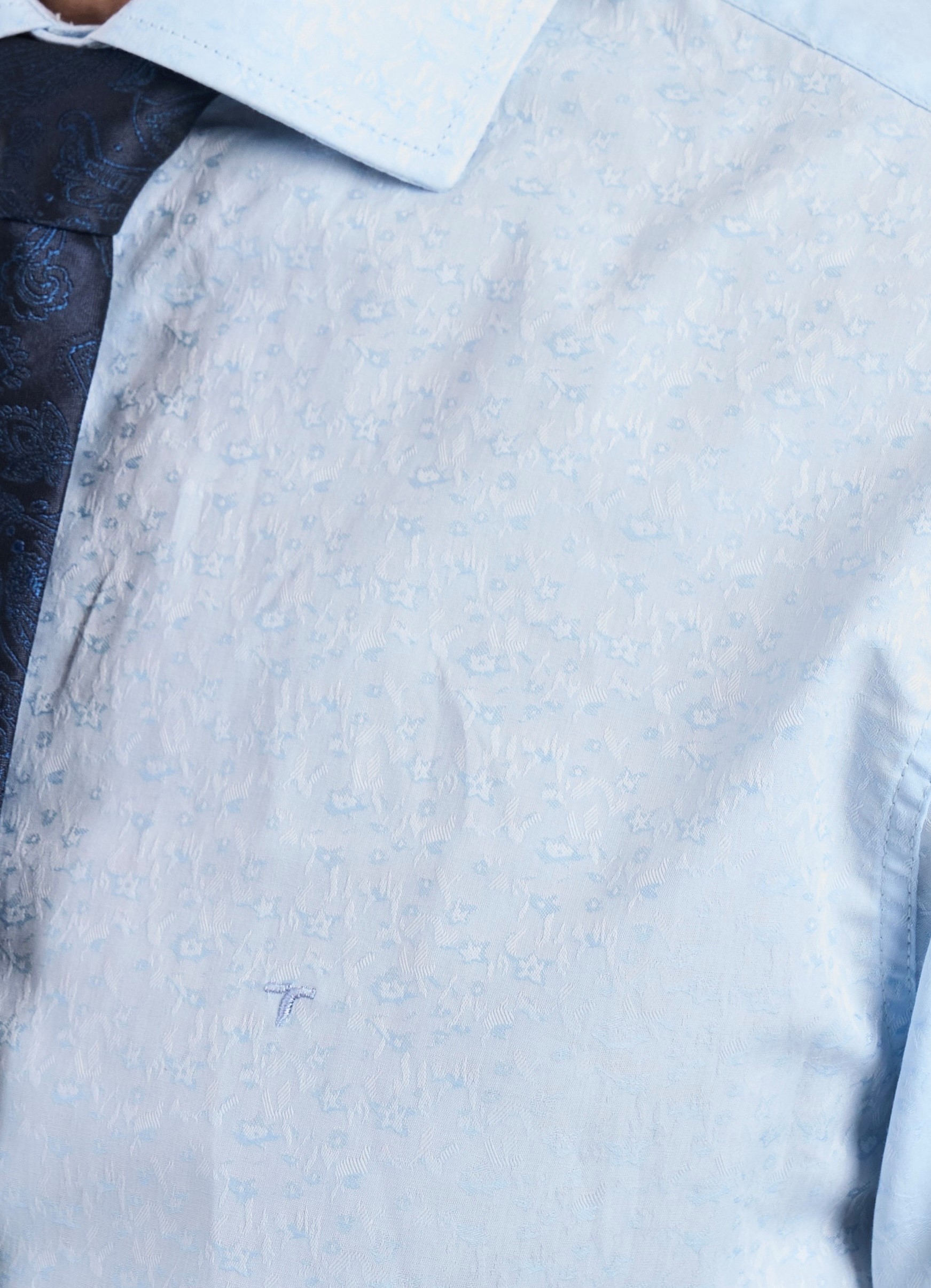 Camisa de vestir confeccionada en 100% algodón de alta calidad, con diseño fantasía sutil que aporta carácter y sofisticación. Su calce slim fit define la silueta con una caída limpia y elegante.