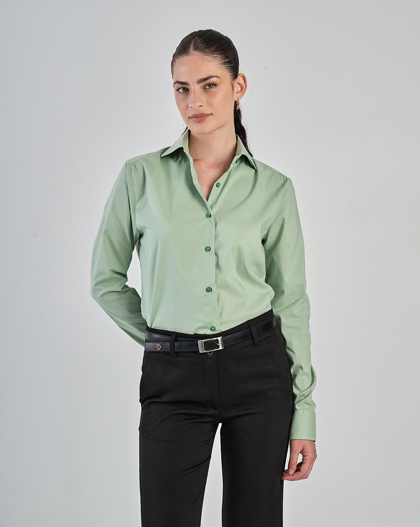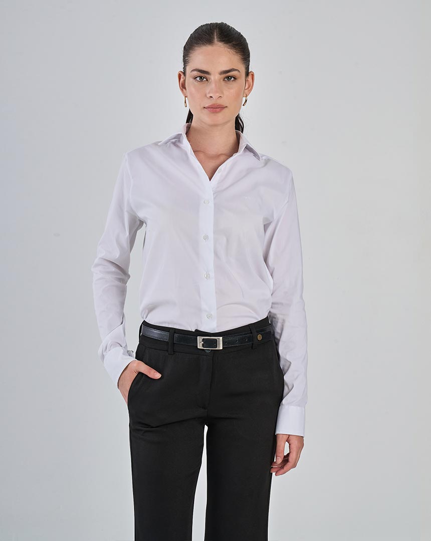 Camisa de vestir clásica, manga larga en poplin con spandex.