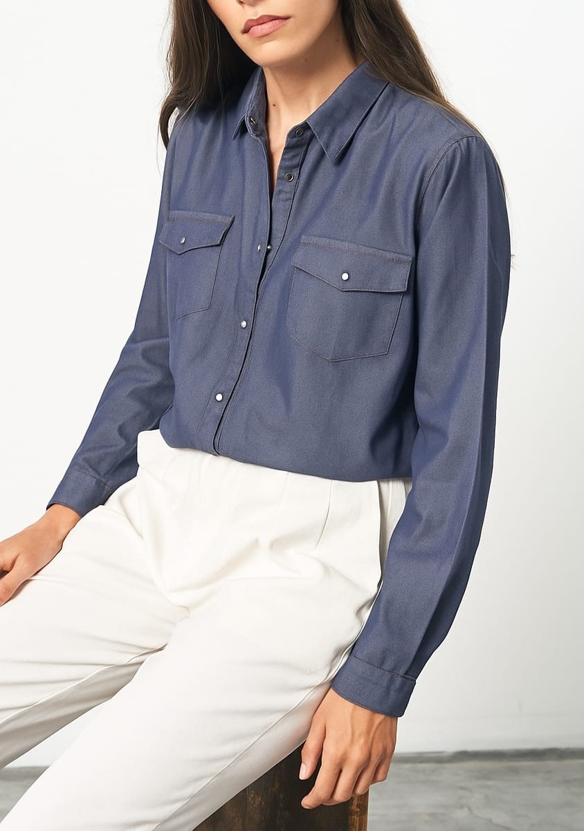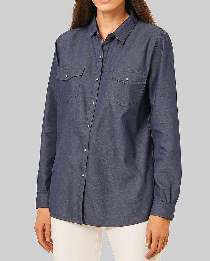 CAMISA DENIM LONGCAMISA CLÁSICA LARGA MUJER BASE 42053