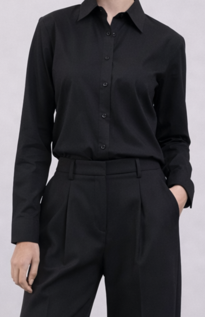 Camisa de diseño contemporáneo y estética depurada, con recortes en el delantero que aportan estructura y un detalle distintivo. Incorpora tablón encontrado en la espalda, sumando movimiento y una caída fluida que realza la silueta. Una prenda equilibrada y elegante, ideal para looks urbanos refinados y propuestas atemporales.