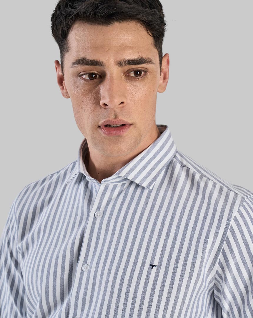 Camisa sport de inspiración clásica con enfoque contemporáneo, confeccionada en tejido oxford de excelente cuerpo y durabilidad. Su diseño a rayas aporta elegancia y verticalidad, mientras que el calce slim fit acompaña la silueta con una caída prolija y moderna.