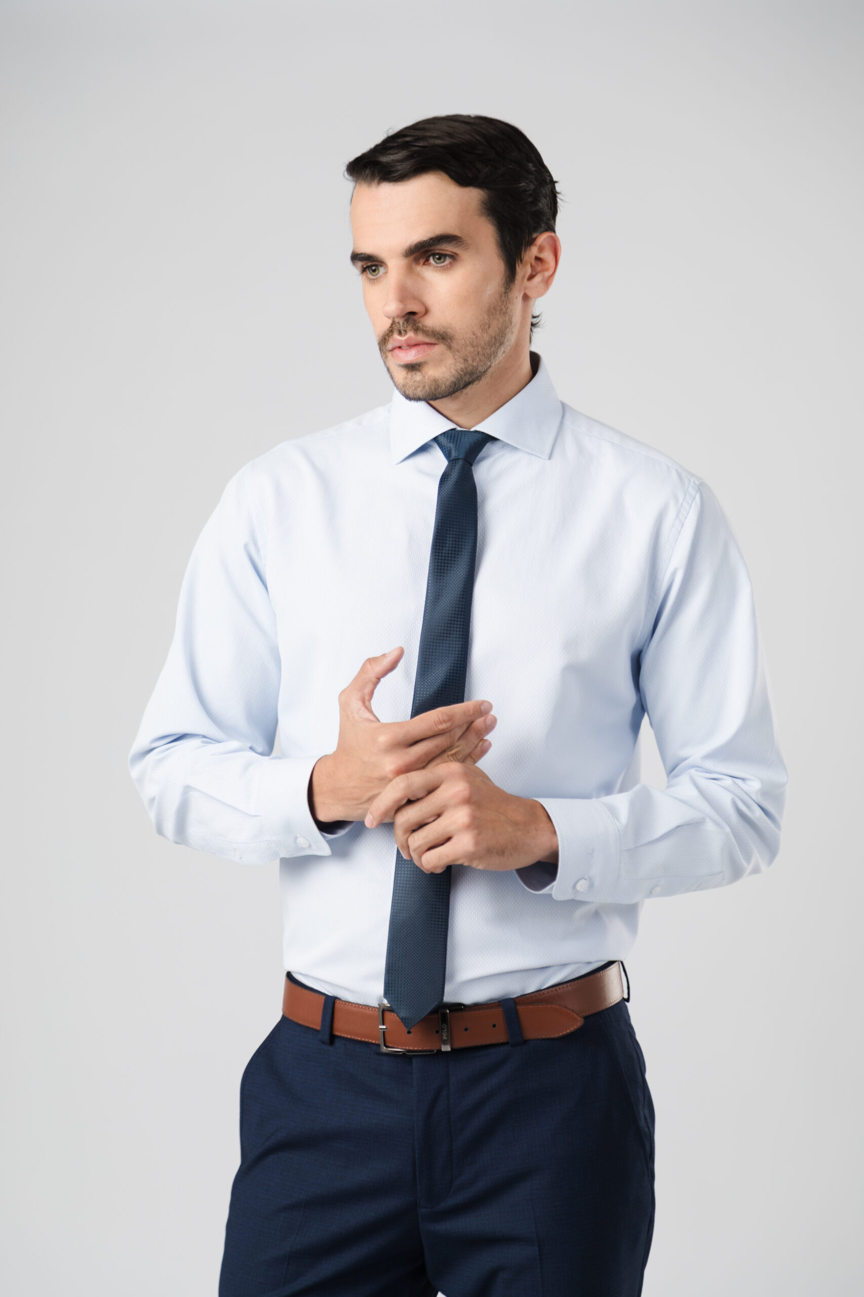 Camisa de vestir de estética refinada, con trama ratier que aporta textura sutil y elegancia discreta. Su calce regular fit ofrece una silueta equilibrada y una caída prolija.