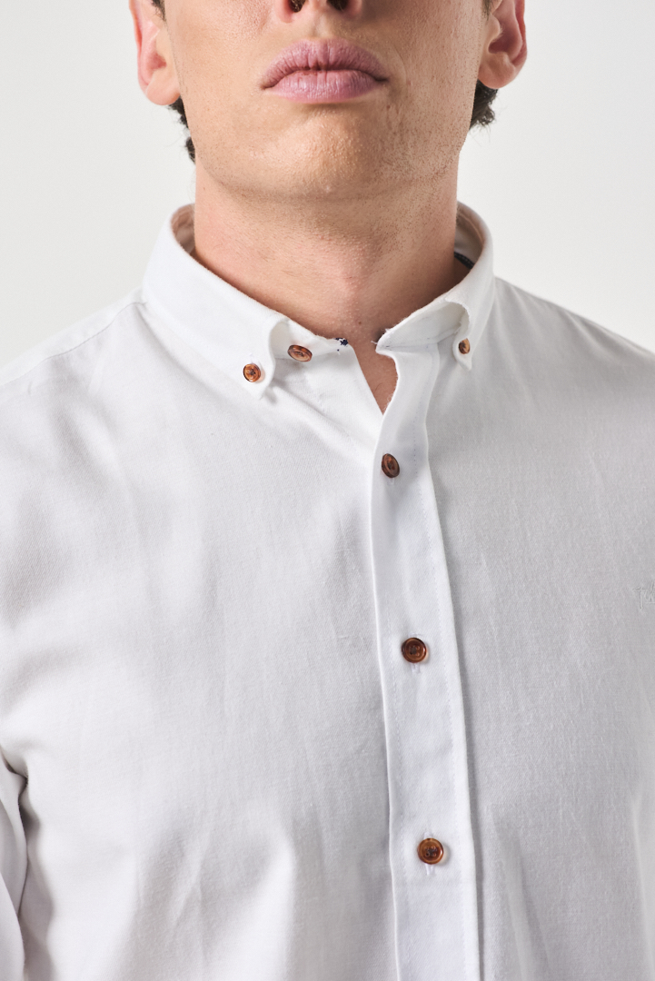 Camisa confeccionada en 100% algodón, de tacto suave y abrigo liviano.