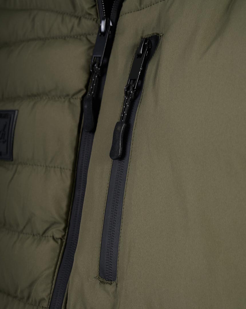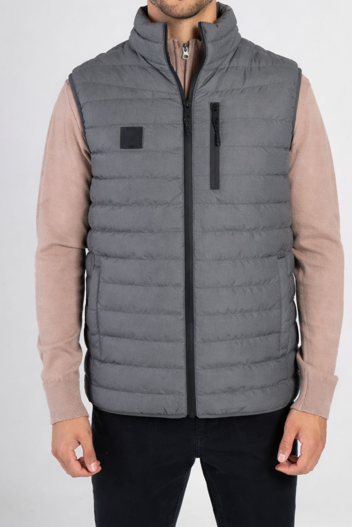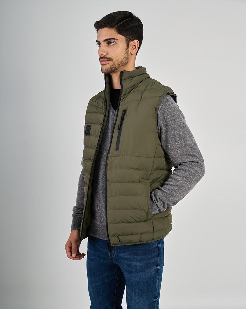 Chaleco confeccionado en matelassé . Ideal para superponer y elevar looks urbanos con un perfil sobrio y atemporal. El modelo mide 1,86 m y está usando talle M.
