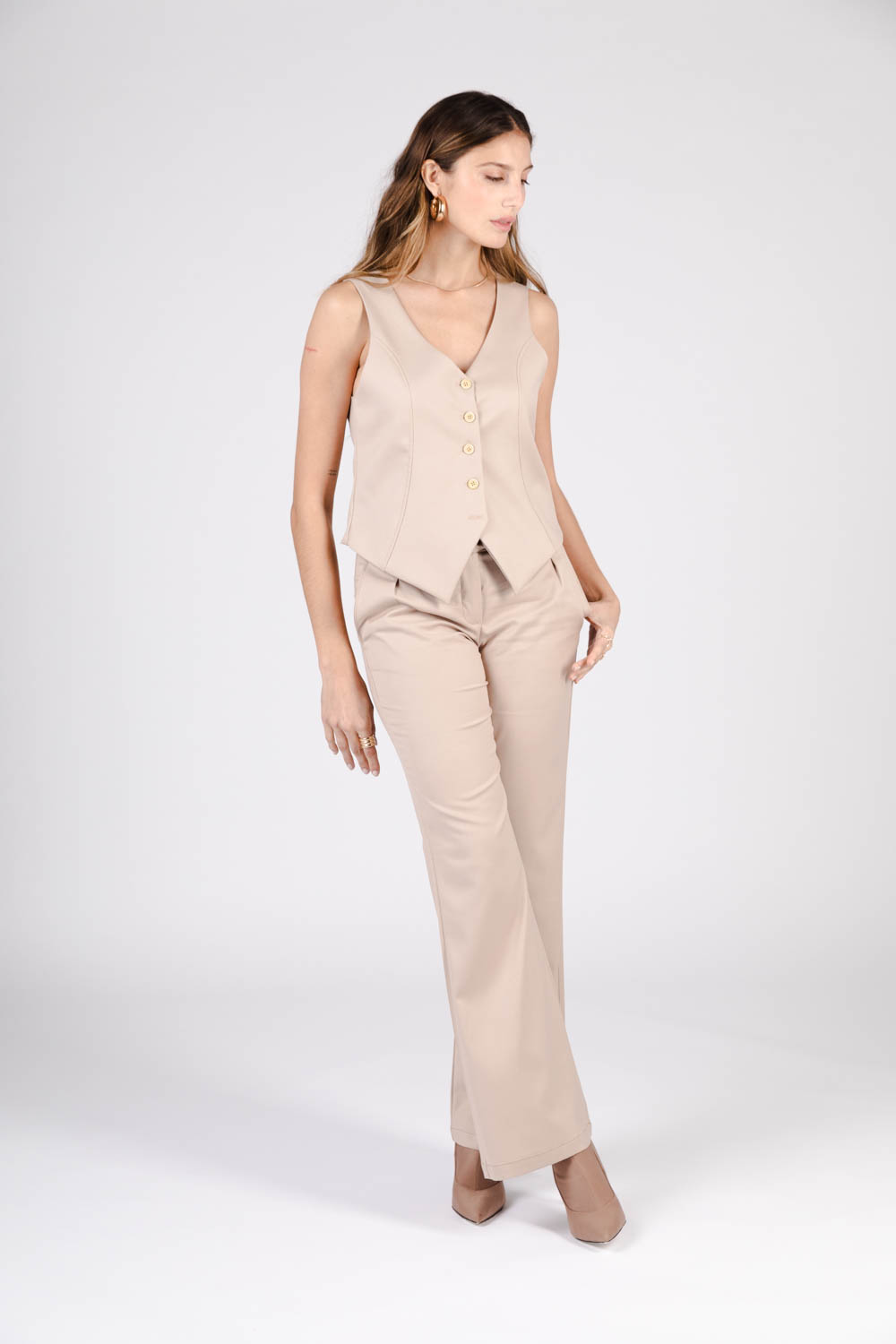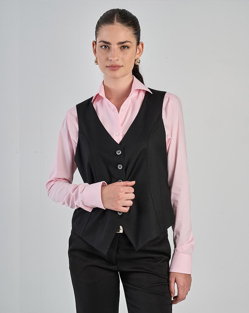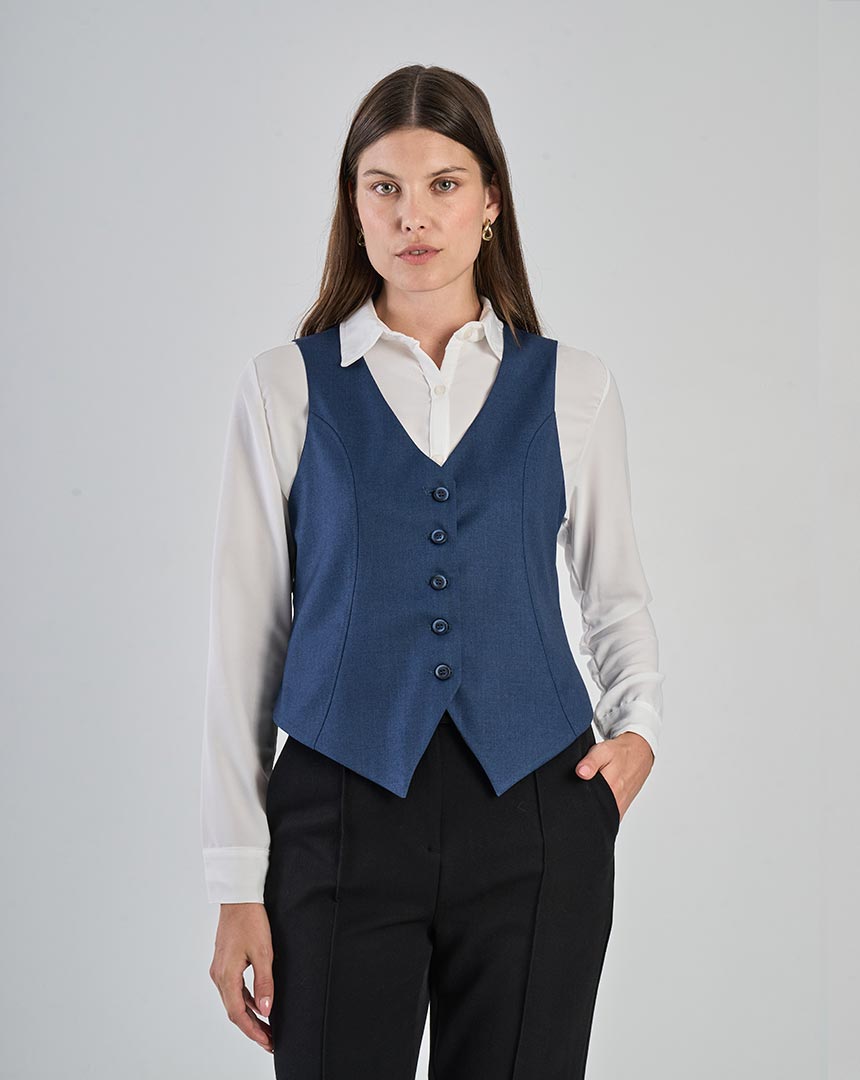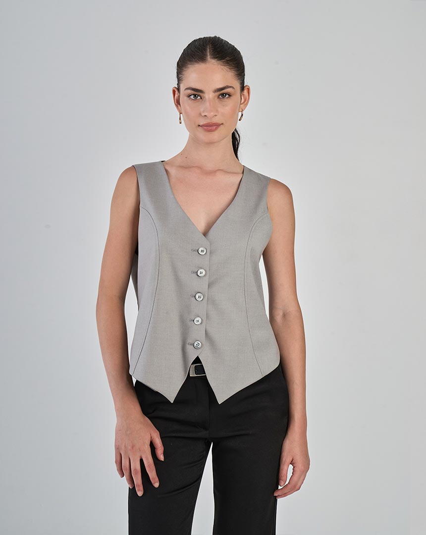 Chaleco sastrero corto sin bolsillos.