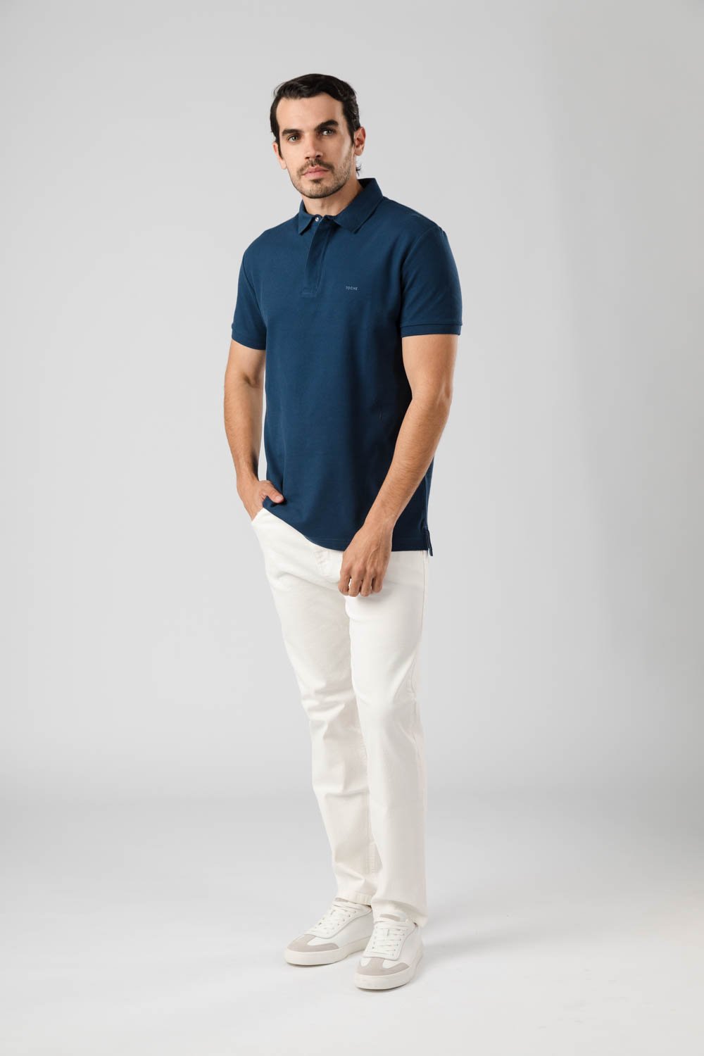 Chomba en pique liso con cierre y broche.