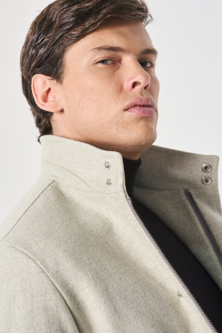 Gabán de líneas elegantes y estética contemporánea, confeccionado en paño de textura suave y caída estructurada. Incorpora cierre con broches y doble bolsillo interior con forrería matelassé, aportando funcionalidad y un detalle distintivo de confección. Una prenda pensada para el invierno urbano, con equilibrio entre diseño, abrigo y sofisticación.