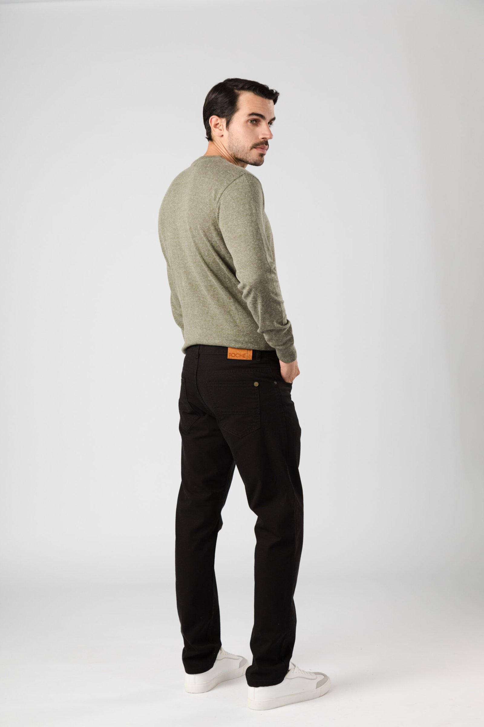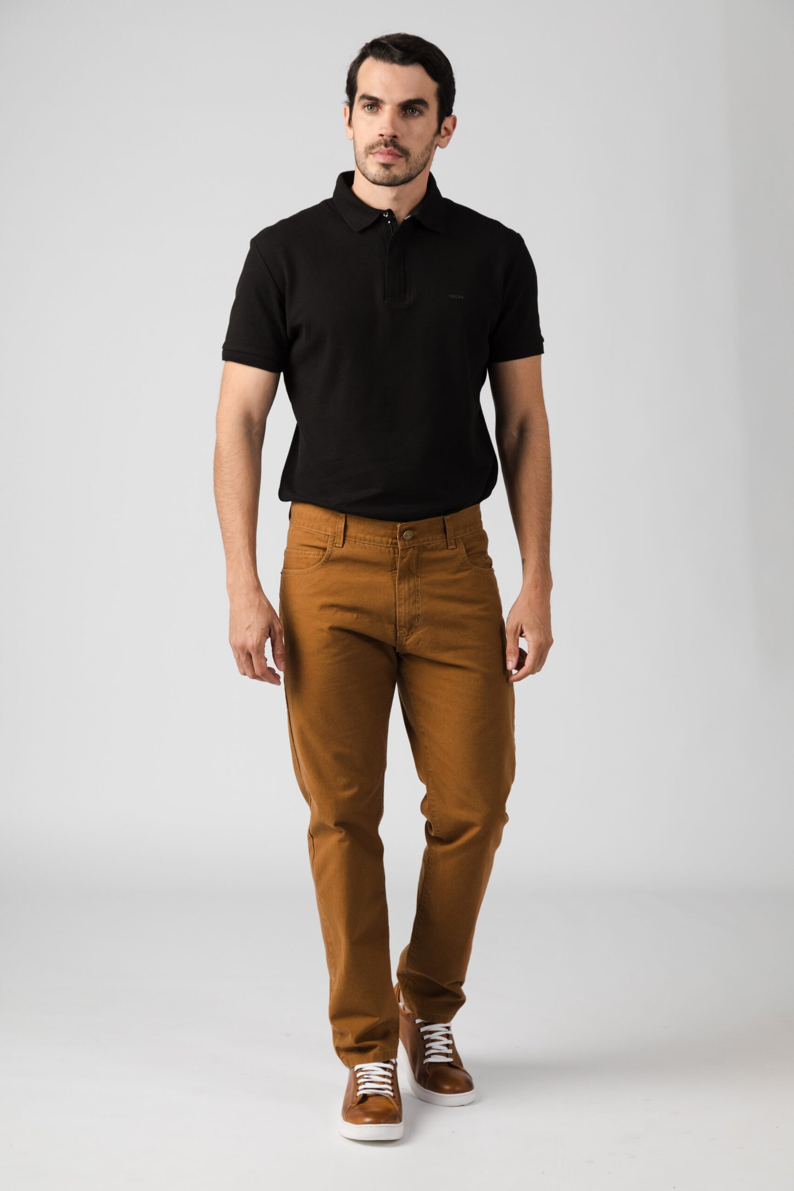 Pantalón confeccionado en gabardina piqué 100% algodón. Su diseño de cinco bolsillos aporta funcionalidad y una estética urbana. El modelo mide 1,85 mts y está usando el talle 44.