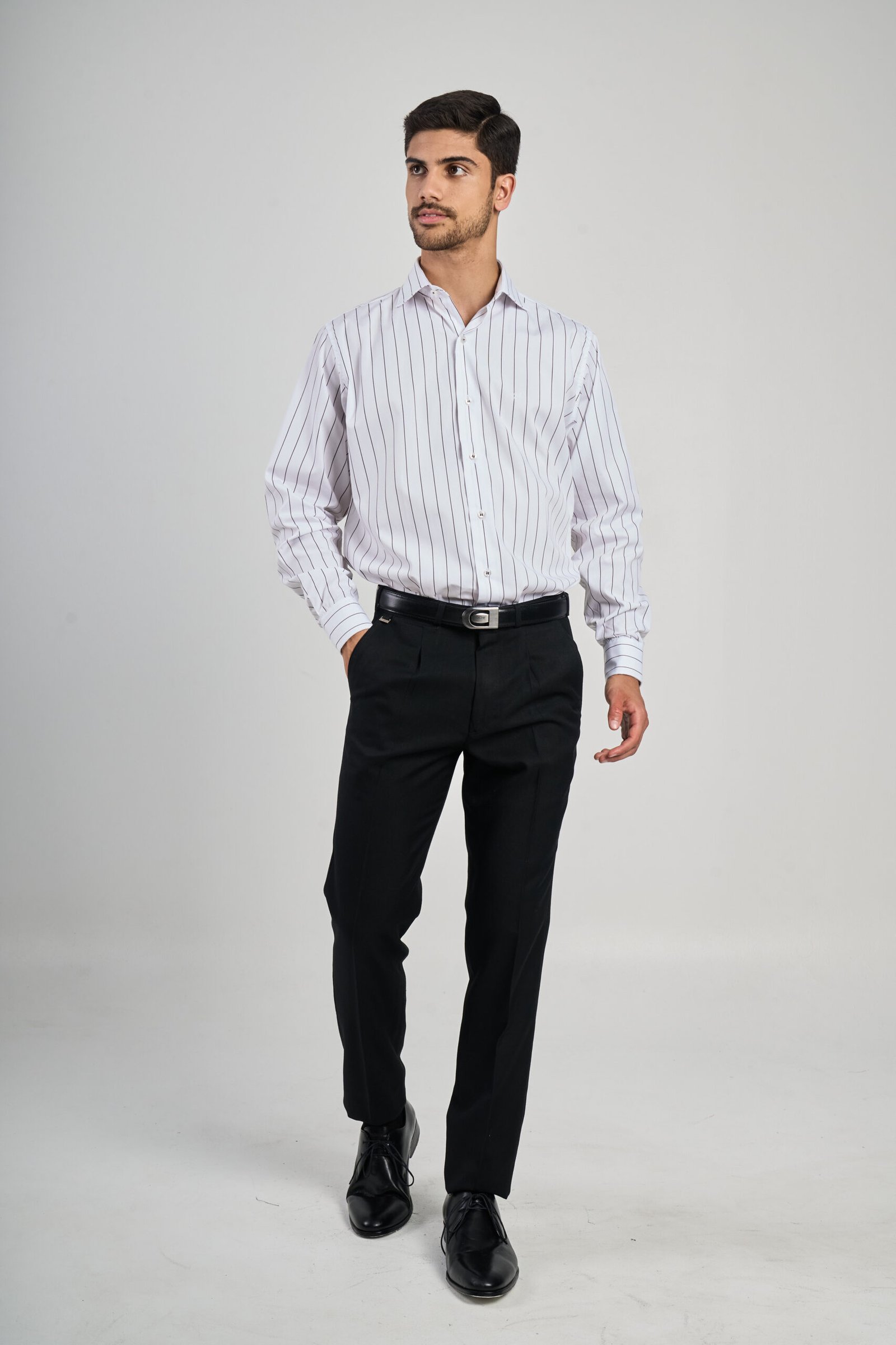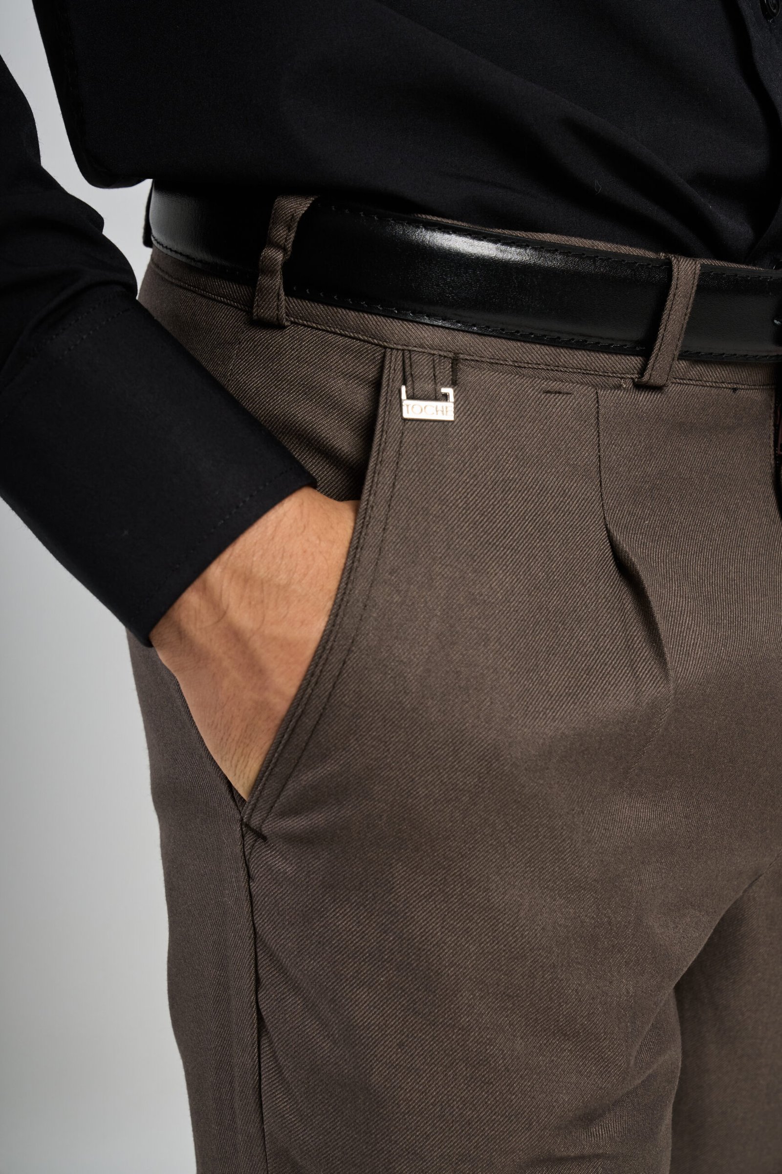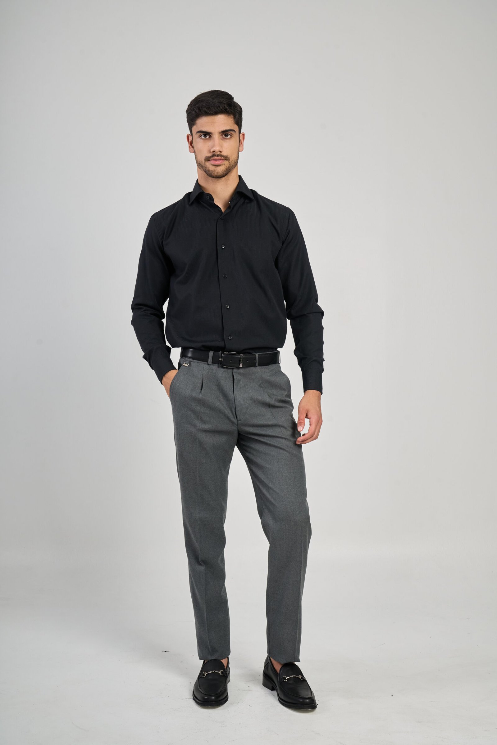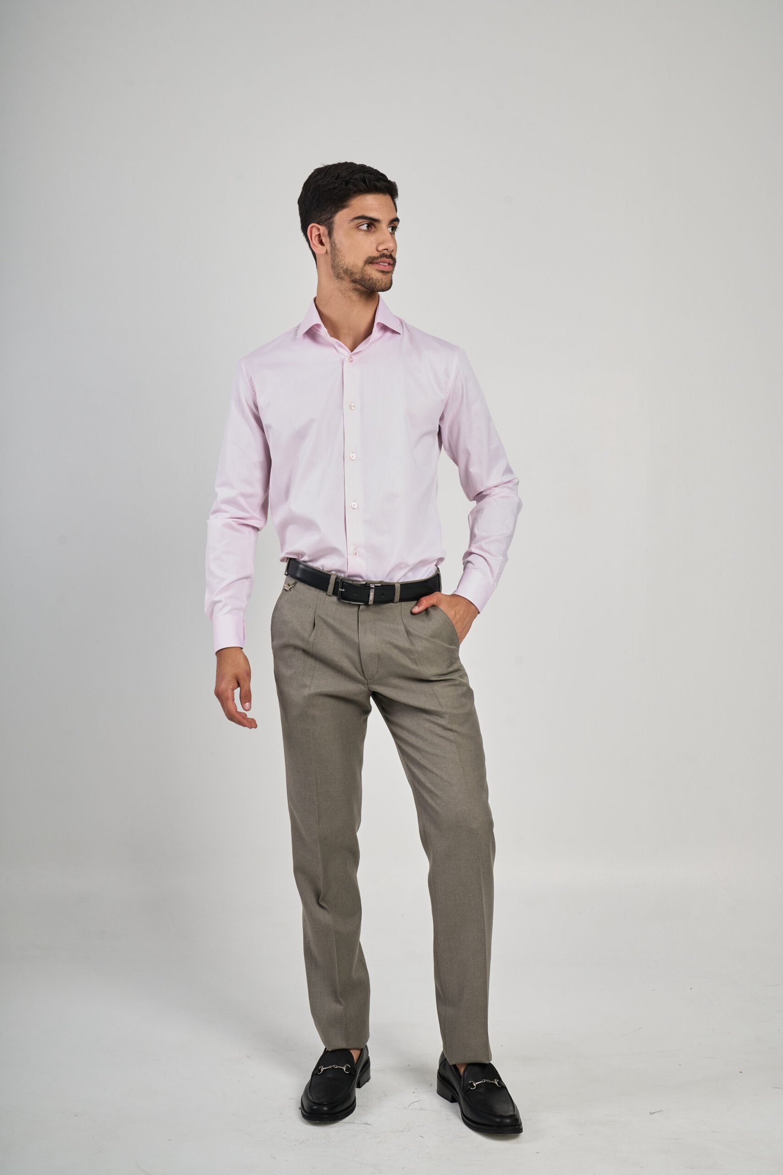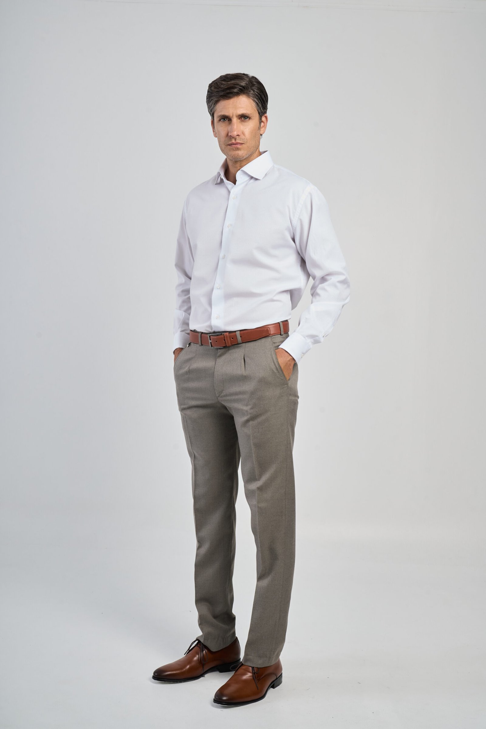 Pantalón de vestir confeccionado en sarga de poliéster y viscosa, que aporta suavidad, resistencia y una caída elegante. Su diseño de una pinza con bolsillo relojero suma carácter clásico y funcional, logrando una silueta prolija y sofisticada.