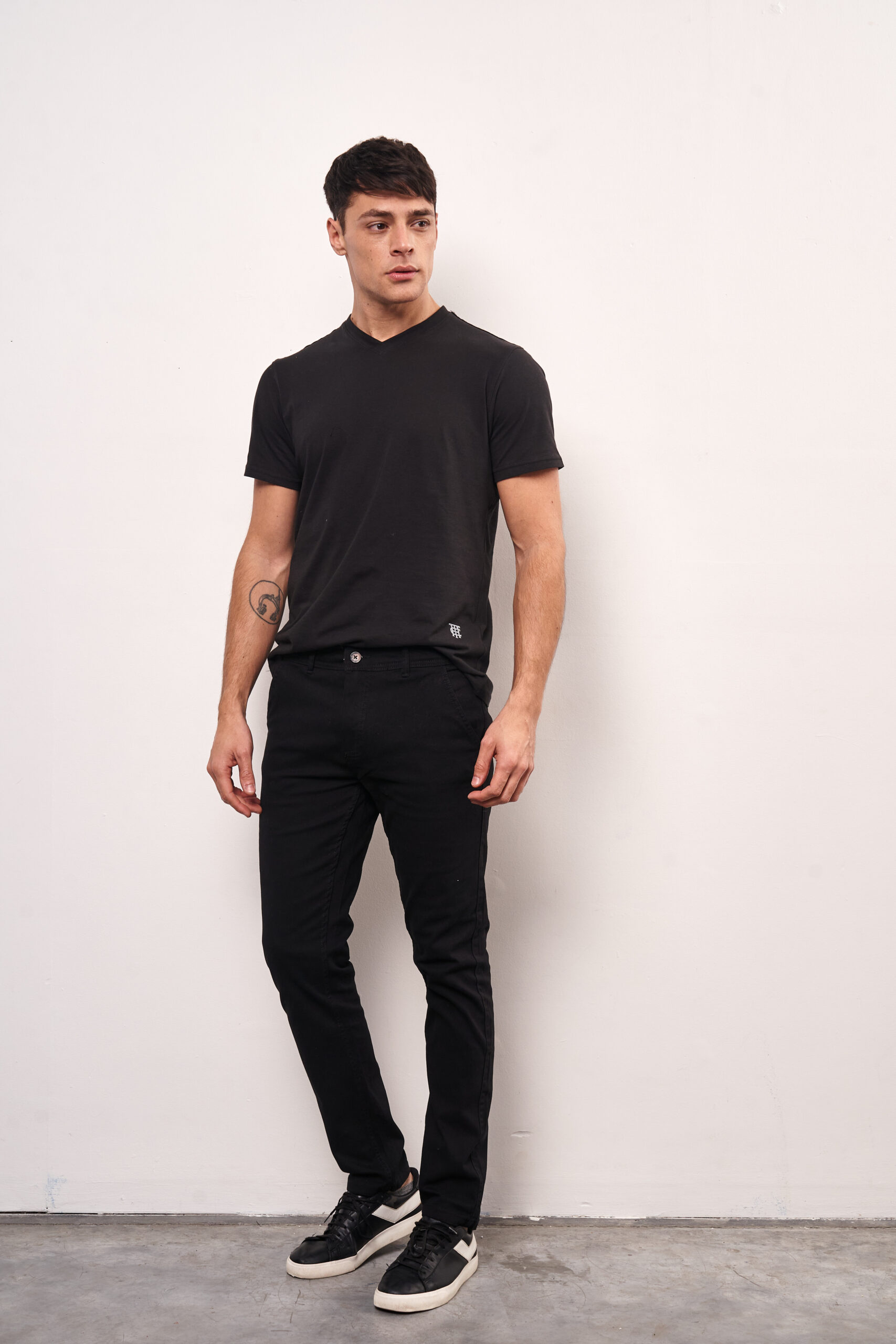 Pantalón chino . Gabardina algodón elastizado con envivado en ruedo .