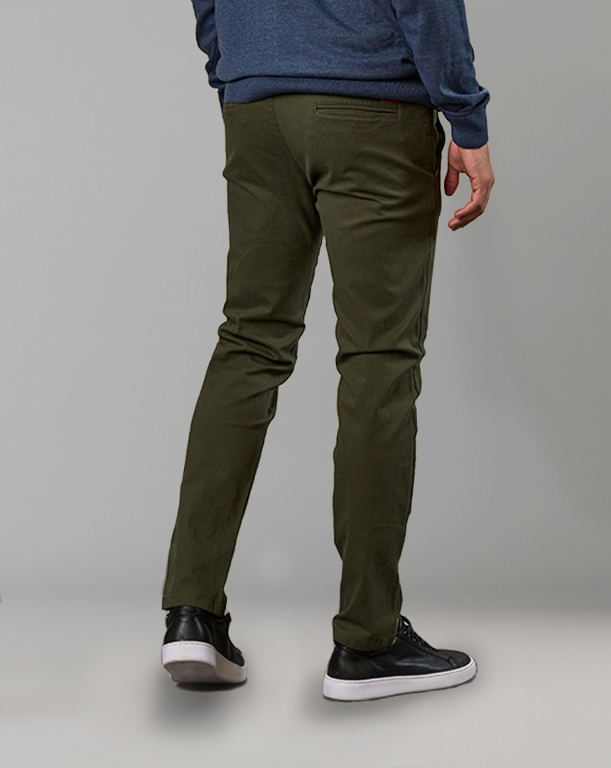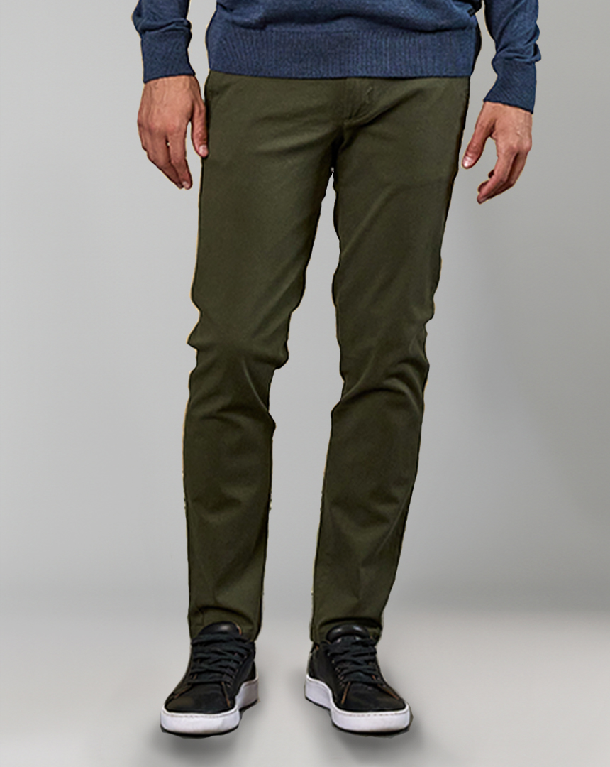 Pantalón gabardina con spandex. Recorte diagonal y bolsillo diagonal.