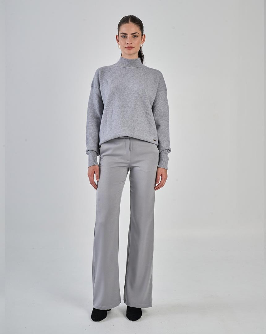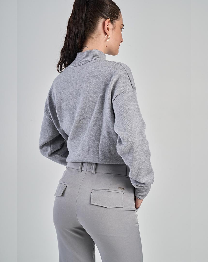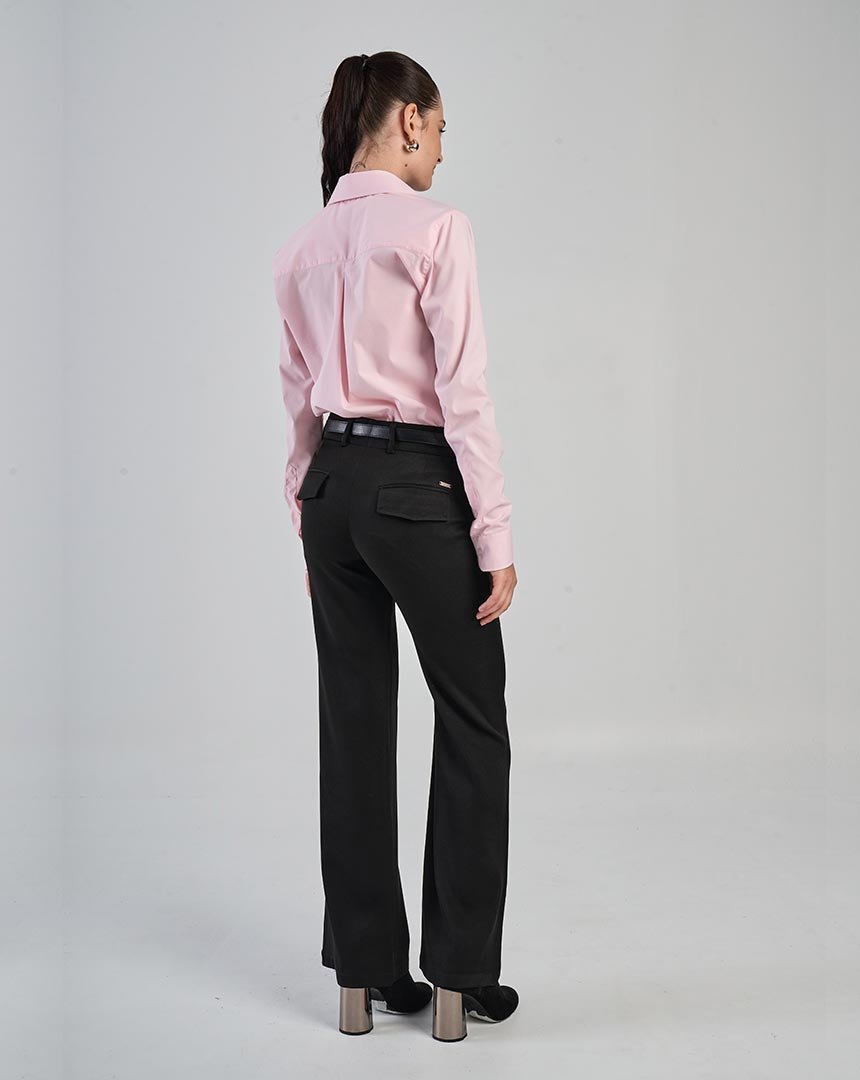 Pantalón sastrero tiro alto sin pinzas y bolsillo traseros con tapita.