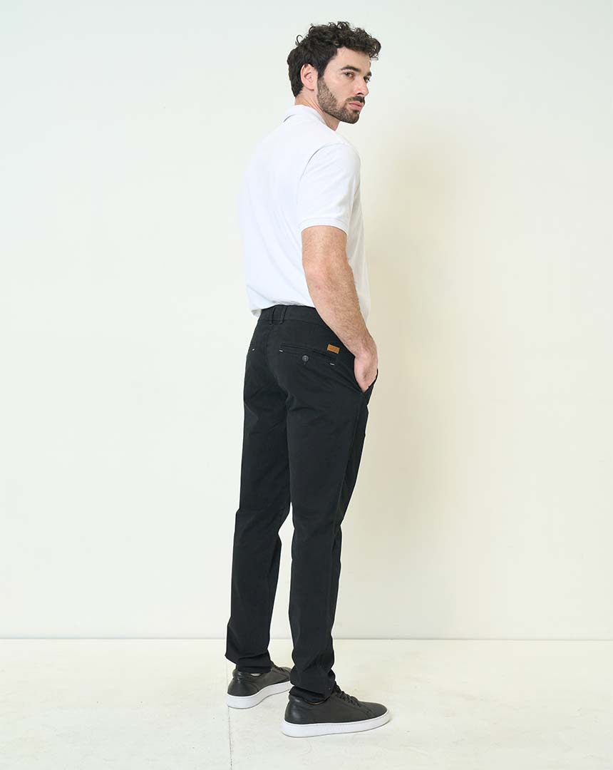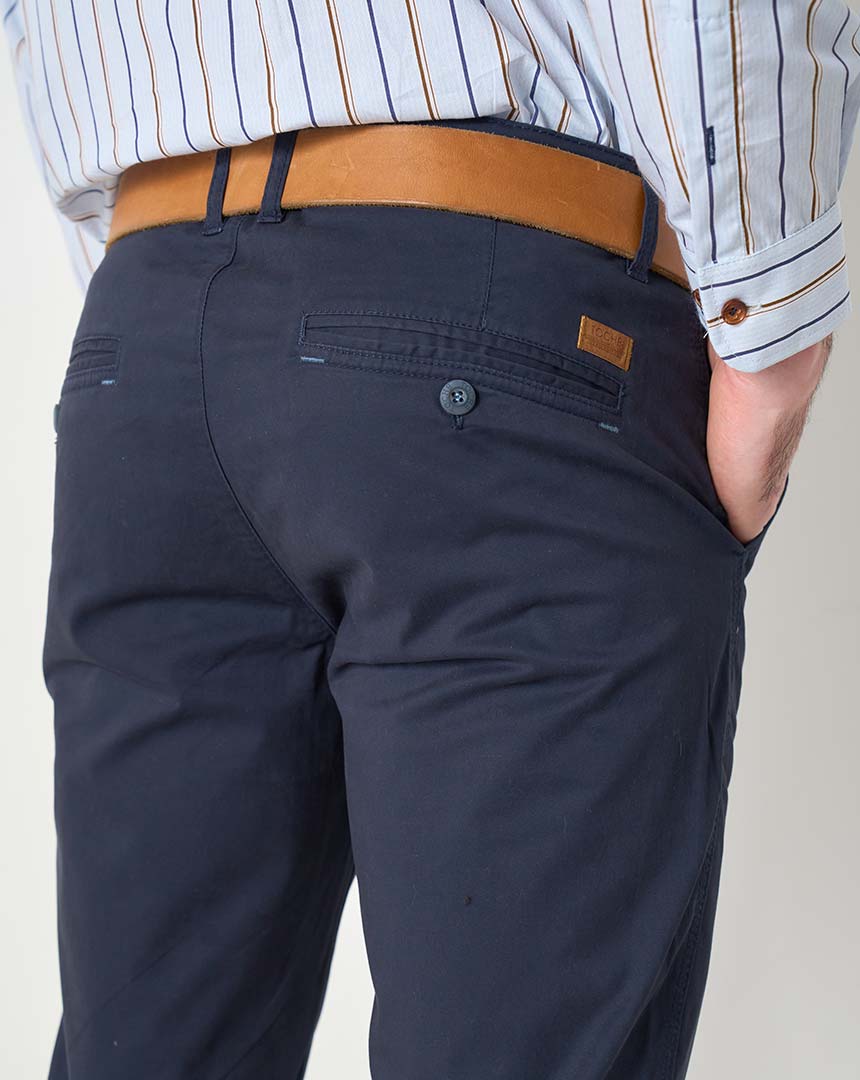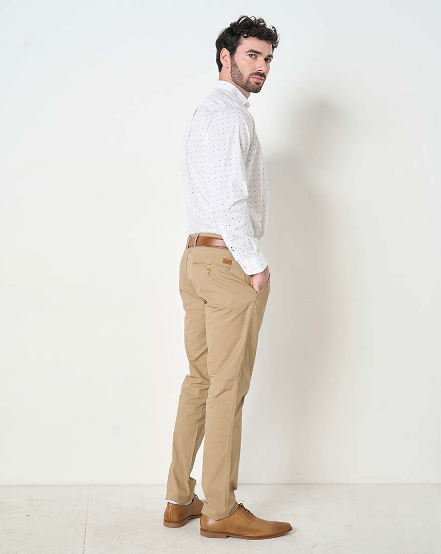 Pantalón sport corte chino satén papper touch con vivo en cintura interna .