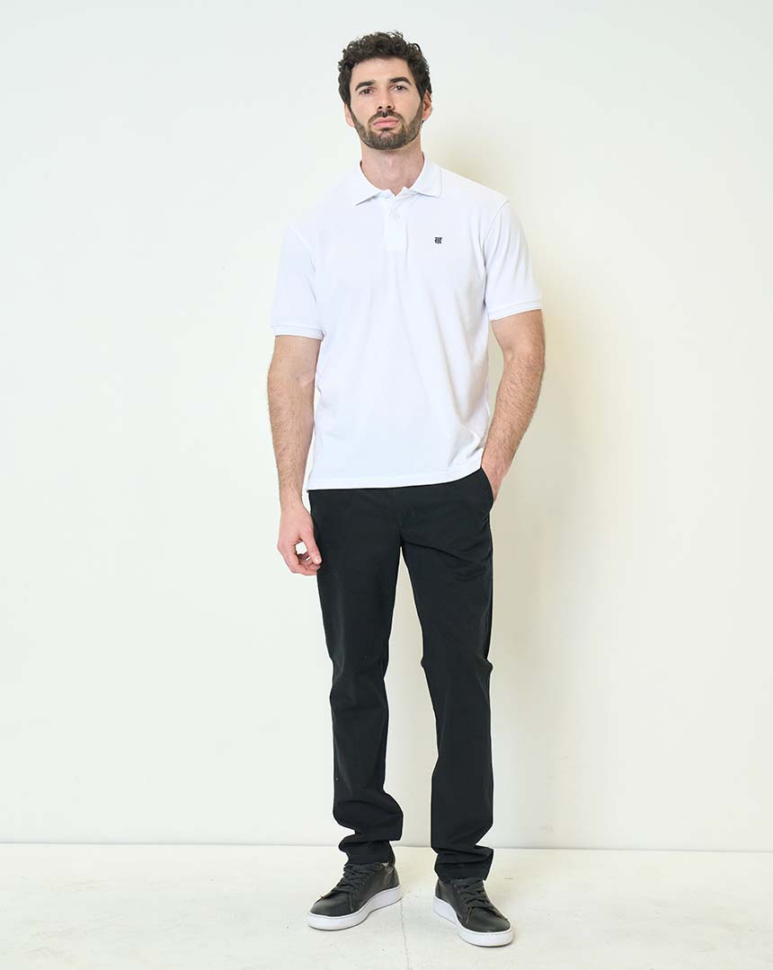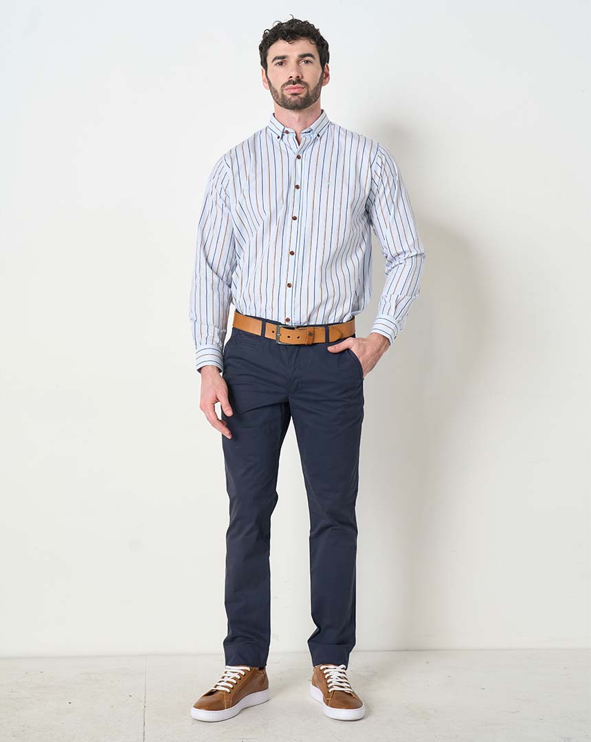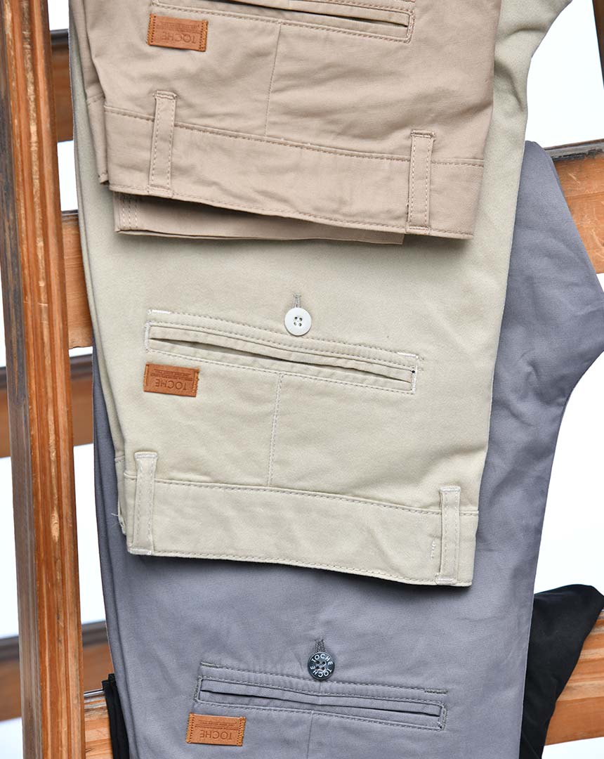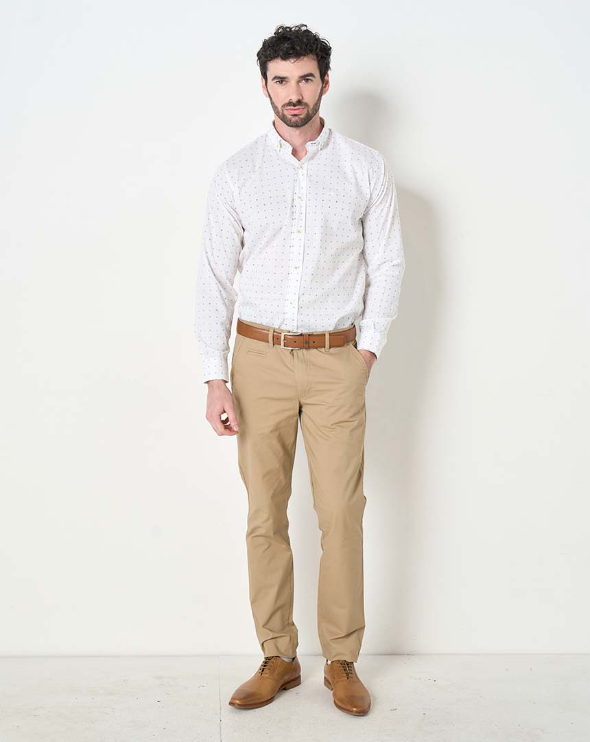 Pantalón sport corte chino satén papper touch con vivo en cintura interna .