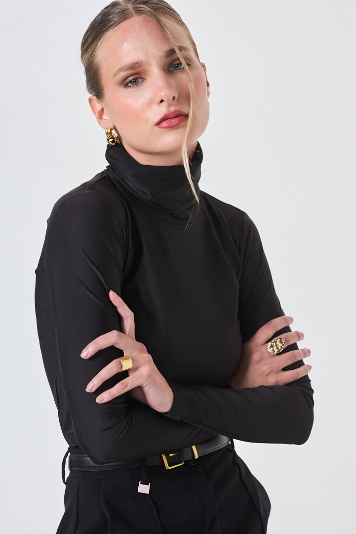 Polera de diseño esencial y estética contemporánea, confeccionada en microfibra de tacto suave y calce confortable. Su textura liviana y elasticidad sutil acompañan la silueta con elegancia, convirtiéndola en una prenda versátil, ideal para usar sola o como base de looks urbanos refinados.