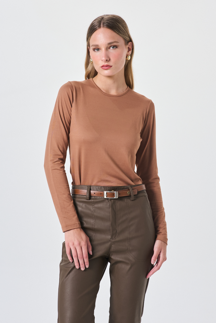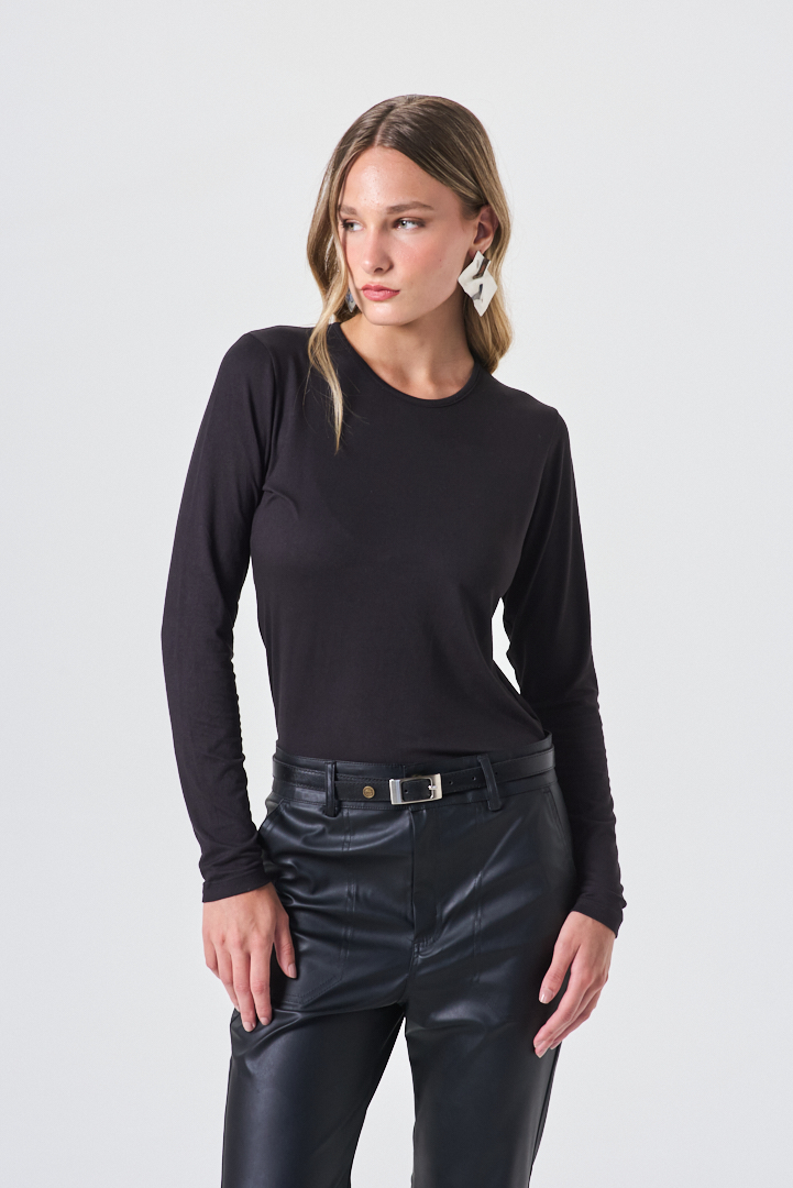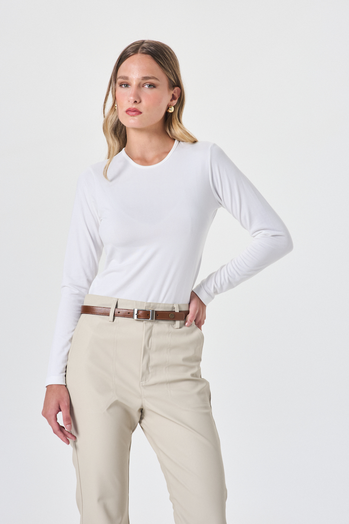Remera de diseño delicado, confeccionada en algodón de tacto suave y caída natural. Presenta escote en la espalda que aporta un detalle sutil y femenino, equilibrando elegancia y frescura en una prenda versátil, ideal para looks urbanos refinados con un giro moderno.
