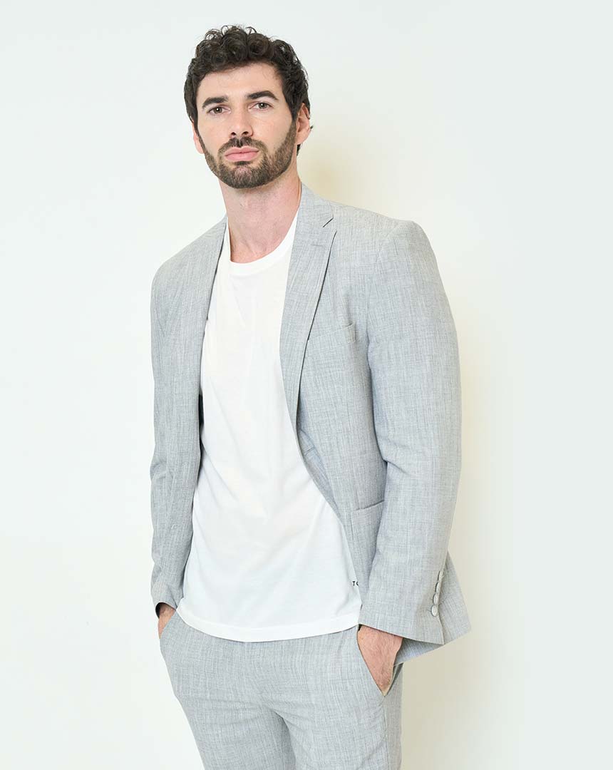 Saco sport confeccionado en mezcla de lino y viscosa, que aporta frescura, fluidez y una caída elegante. Presenta dos botones, bolsillos plaqué y una abertura trasera, logrando una silueta moderna y refinada.