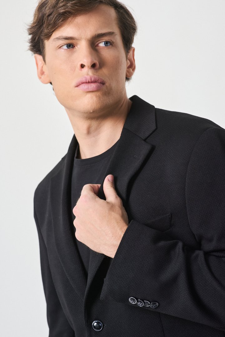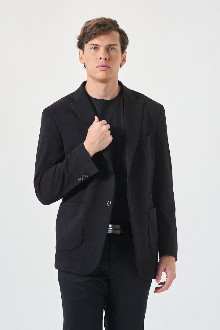Saco sport confeccionado en tejido de punto, que aporta confort, flexibilidad y una caída relajada y prolija. Su corte regular fit ofrece una silueta equilibrada, mientras que el bolsillo plaqué suma funcionalidad con una estética urbana refinada.