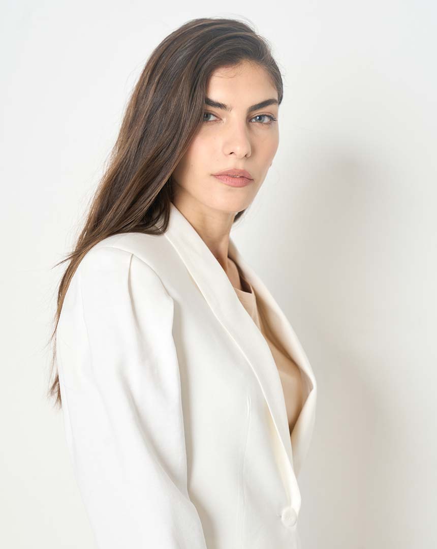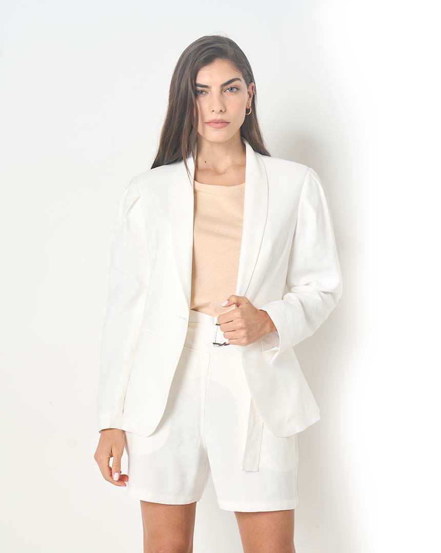 Saco sastrero solapa chal 1 botón con manga princesa.