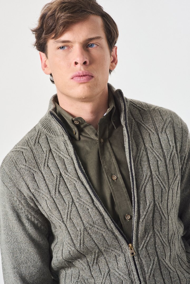 SWEATER CARDIGAN CIERRE PUNTO ESPIGA GRIS