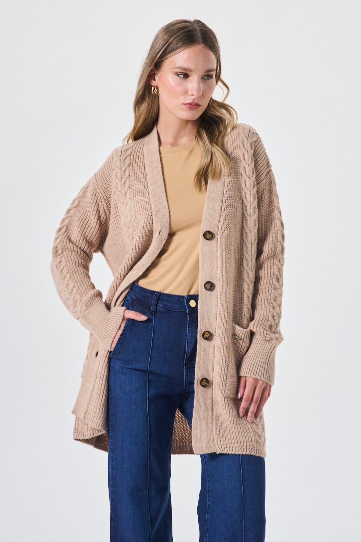 SWEATER CARDIGAN LARGO CON BOLSILLOS BEIGE