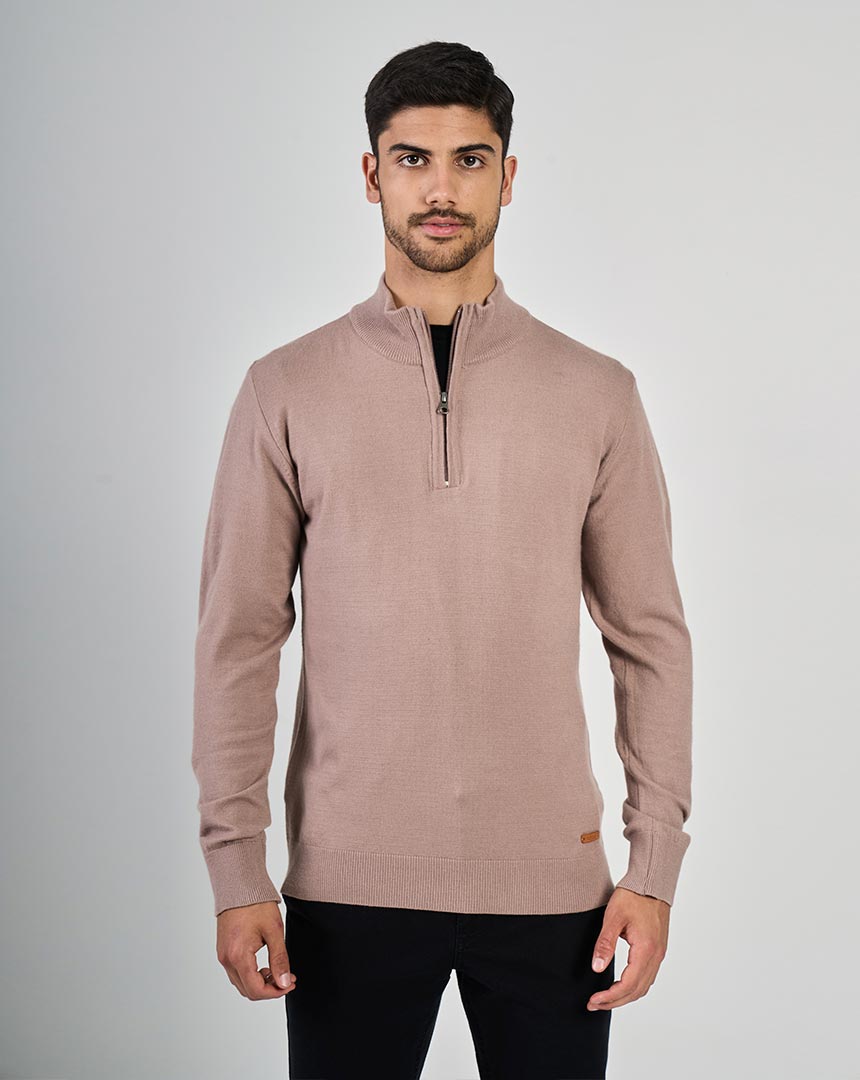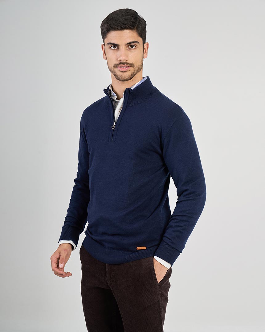 Sweater de estética contemporánea y diseño funcional, confeccionado en tejido liso de textura suave y caída cuidada. Incorpora medio cierre con cuello interno combinado, un detalle sutil que aporta contraste y carácter, manteniendo una impronta sobria y refinada. Ideal para looks urbanos de invierno con elegancia relajada.