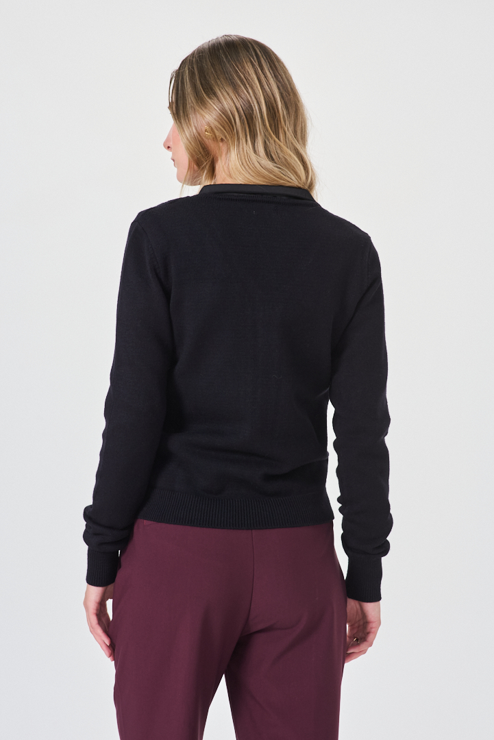 Sweater de estética atemporal y diseño cuidado, con escote en V que estiliza la silueta y trabajo de trenza en el delantero que aporta textura y carácter sutil. Su equilibrio entre detalle artesanal y líneas depuradas lo convierte en una prenda versátil, ideal para looks urbanos refinados con impronta elegante.