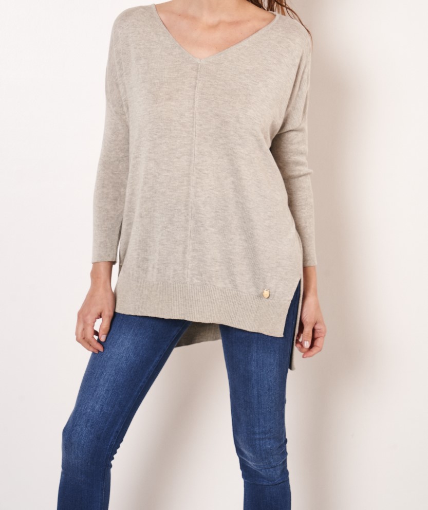 Sweater escote en V, holgado y liviano. Con caída fluida